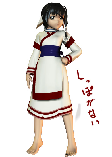 エルルゥ服は、あとはしっぽと靴です。首飾りが小さすぎた^^。だって、首を曲げたらあごが食い込むんだもん・・・