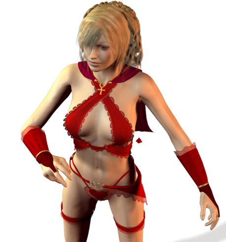 実はV4/A4には脇の下も真っ青の難関がある。太腿の中間少し上辺りなのだが、ここは脚を正面に上げても横に上げても、ポリゴンがぐにょりと動いて筋肉の盛り上がりを表現している。だから、ガーターベルトの類は波打ってしまう。あれを綺麗に調整できる人はすごいと思う。