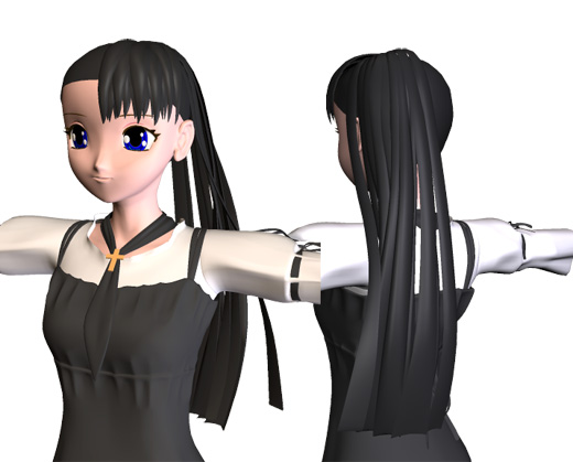 アニメタイプの髪で、こんな作り方をしているのは少数派みたいだ。大抵もっと大きなブロックで構成されている。前髪ならせいぜい4ブロックくらい。