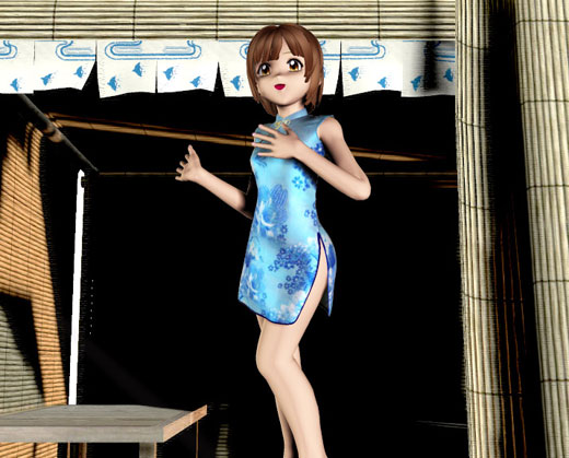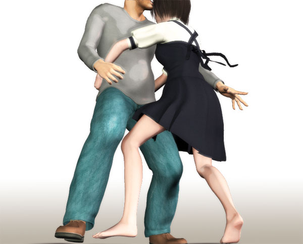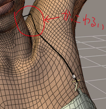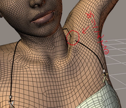 補正モーフ適用後。鎖骨下の弓なりの変形は良くなったがカクカクは直らなかった |
