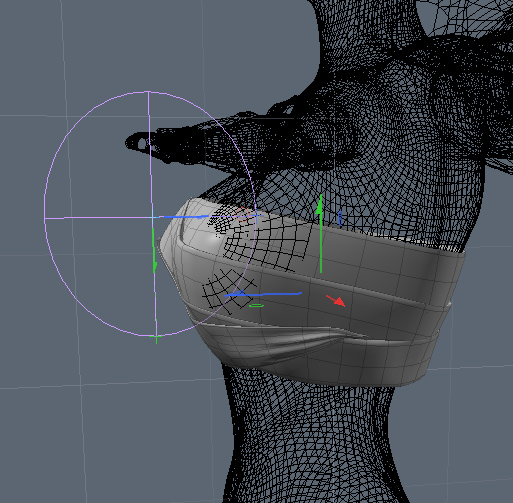 3.頂点を押したり引いたりして調整していきます。modoはパーツを物理的に分ける必要がないので、パーツ境界を気にすることなく作業を進めることが出来ます。modo上でのパーツ分けとは、領域を選択してパーツ名を割り当ててやる作業になります
