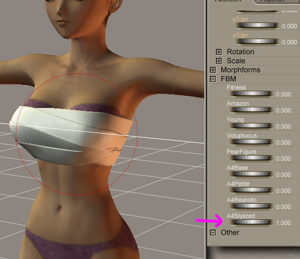 6.poser上でchestとabdomenのデータを取り込んでFBMを作成しました