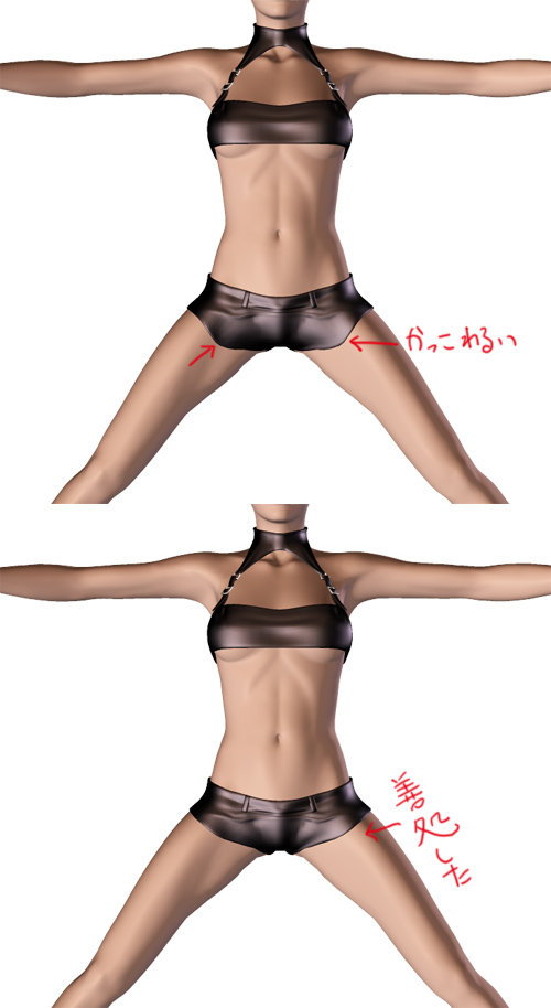この種の肌に密着した衣装は、ジョイントパラメータは極力本体と同じにした方が望ましい気がする。